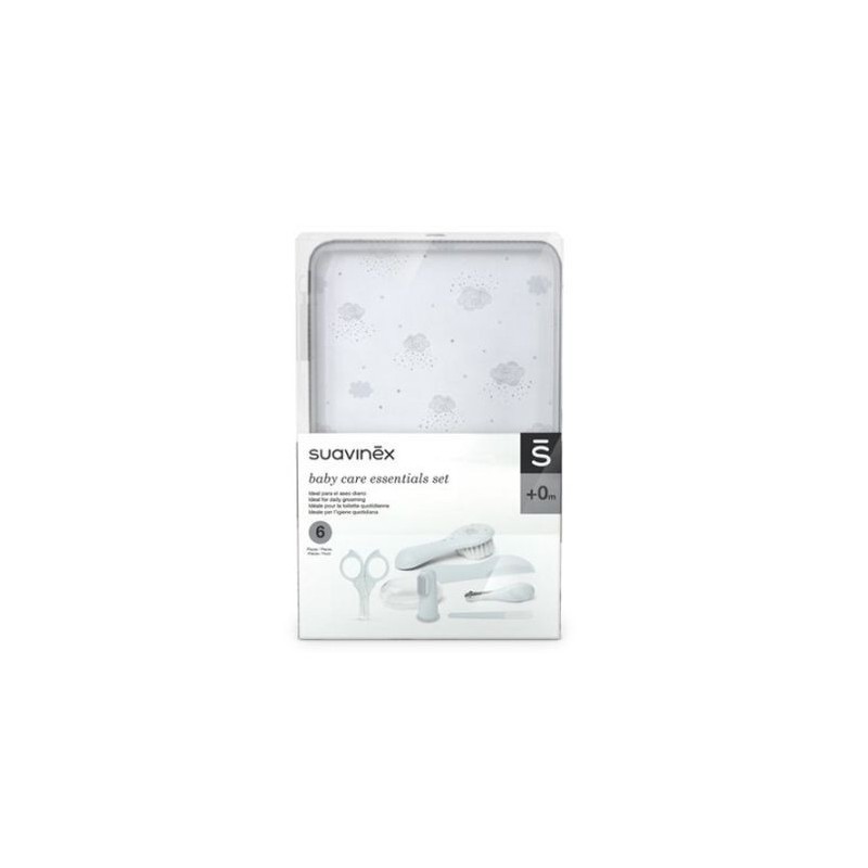 Set de manicura de suavinex con 8 productos esenciales, ¡todo lo necesario para la hora del baño! neceser rígido e impermeable, con cierre de cremallera. Muy práctico para transportar todos los accesorios para el aseo del bebé bien ordenados este pack incluye: neceser manicura con 6 productos para el cuidado del bebé. Termómetro de bañera. Esponja para recién nacido. Incluye: cepillo-peine: cepillo de fibras pobladas y muy suaves. Cepillo dental: cepillo de dedal de silicona. Pensado para introducir el dedo y limpiar suavemente las encías y primeros dientes del bebé. Tijeritas: de reducido tamaño y punta redondeada. Lima: específica para uñas finas y frágiles. Cortauñas: diseño ergonómico para manejar con precisión con una sola mano. Termómetro de bañera: sin mercurio. Esponja canastilla: de tamaño pequeño para los primeros días de vida.