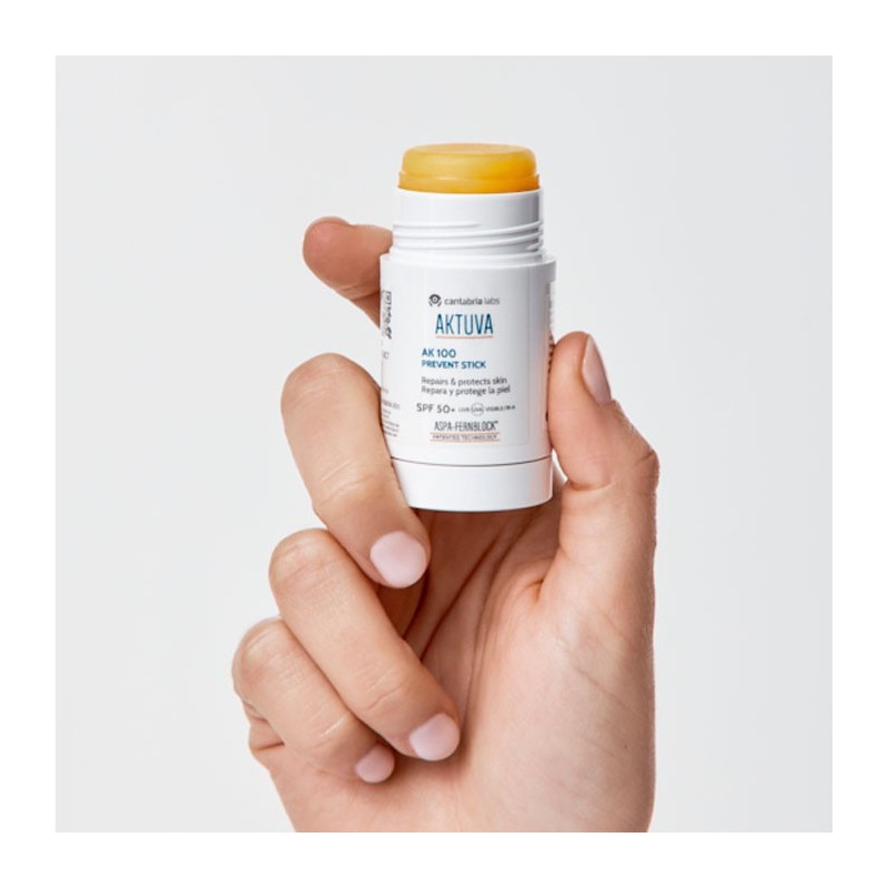 Aktuva ak100 prevent stick es una solución de fotoprotección muy alta diseñada específicamente para pieles sometidas a una exposición solar continuada y entornos urbanos con polución. Este innovador stick no solo actúa como un escudo frente a la radiación uv, sino que ejerce una potente acción reparadora de la función barrera, ayudando a recuperar la integridad de la piel dañada por factores externos. Su versatilidad permite una aplicación precisa en el rostro, los labios e incluso en el cuero cabelludo, donde su textura ligera garantiza un confort total.