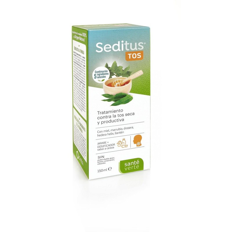 Descripción: Sante Verte Seditus tos es un jarabe natural diseñado para aliviar la tos seca y productiva, así como el picor en la garganta. Su fórmula única contiene cinco ingredientes naturales que actúan de manera efectiva para proteger y calmar la mucosa.